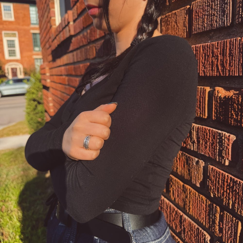 Made from tarnish-resistant Argentium sterling silver, this lightweight and durable band is designed for daily wear. It allows for easy stacking, pairing beautifully with other thin hammered bands. Whether you wear it solo for a subtle statement or stacked for a bolder style, this ring is as versatile as it is unique.