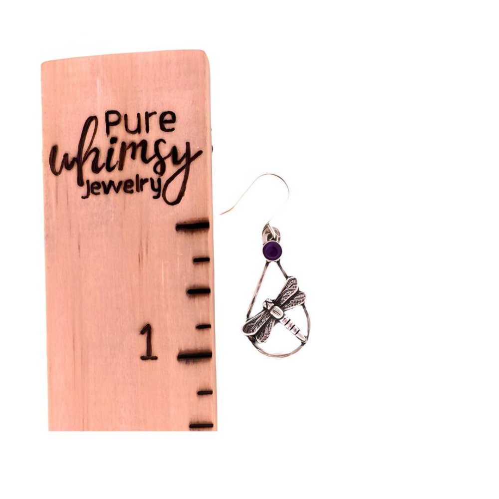 Nature-Inspired Elegance with Spiritual MeaningHandcrafted from fine silver and tarnish-resistant Argentium sterling silver, these artisan earrings feature a graceful dragonfly design within a teardrop shape, symbolizing transformation, adaptability, and emotional depth. A 4mm amethyst cabochon, long associated with peace, inner strength, and spiritual clarity, adorns them.